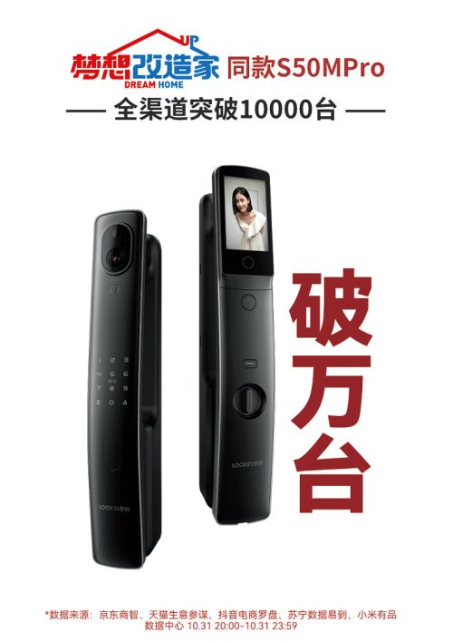9月底,鹿客更是凭借出色的产品实力成为《梦想改造家》唯一官方合作智能锁品牌,节目一经播出,《梦想改造家》同款智能锁S50M Pro也受到了广泛关注,为双11交上一份满意的答卷。