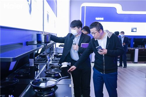 为了更直观地看出海尔双腔速吸集成灶的“净”能力,在启动会上,工作人员带来了现场演示,与在场观众一同见证了海尔双腔速吸集成灶带来的更快的风速和更广的控烟区域,搭配以全新升级的“免拆洗”科技,达成内外都干净的净烟效果。