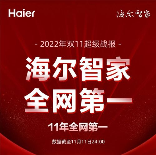 那么今年双11,谁是「抓住用户」的最后赢家?一组数据显而易见,截至11月11日24时,海尔智家实现了大家电全网第一,创下11年全网第一的新纪录,且实现了多渠道第一、多品类第一、多榜单第一、高端第一、口碑第一。