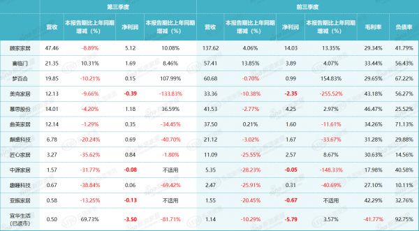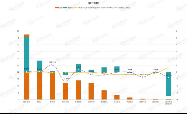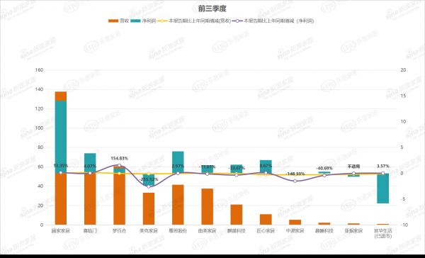 第三季度,12家企业中,仅顾家家居、喜临门、慕思股份3家净利润过亿,其中,美克家居、中源家居、亚振家居、宜华生活等4家公司净利润为亏损状态,超半数企业净利润同比下滑。