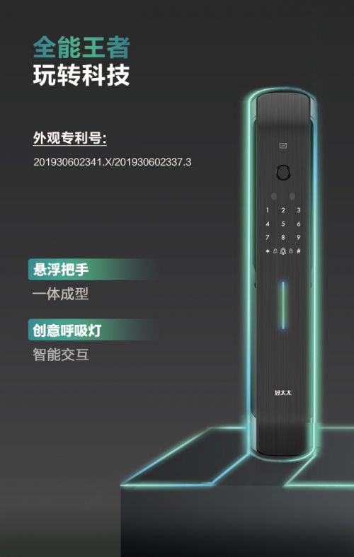 好看外表也可以万里挑一。好太太智能锁V83一改铁将军冷面特点,采用一体成型的悬浮把手,融合智能交互的创意呼吸灯,有红古铜、深空灰2个高级色,科技感爆棚,该外观设计荣获国家专利号201930602341.X/201930602337.3,整体设计更是荣获中国一东盟工业设计大赛“金紫荆杯”优秀奖,实用与艺术相结合,带给消费者不一样的智能家居体验。