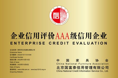 11月21日,中国家具协会理事长徐祥楠作《中国家具协会第七届三次理事会工作报告》,公布了2022年中国家具行业企业信用等级评价结果,左右家居荣获AAA级企业信用等级证书。AAA级是企业信用评定的较高级别,反映了企业经营健康、综合素质优秀、社会责任感强、用户满意度很高、风险防范能力强、发展前景广阔,是最可信赖的商业合作伙伴。