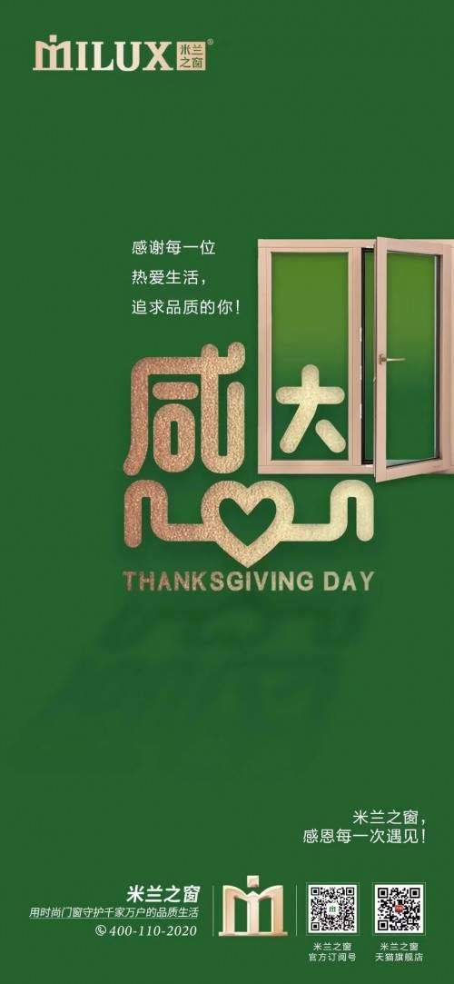 知恩于心,感恩于行。感恩予我生活甘甜,伴我风里雨里的你。致谢感恩节,让我们能在气温渐寒的冬日中向生命中重要的人道声感谢。美好生活,用心感恩,用一樘高品质门窗让家升温,开启美好家居生活,用爱温暖彼此。
