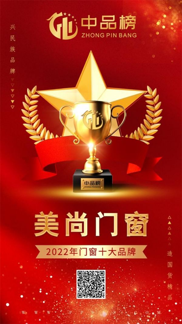 优秀!美尚门窗荣膺“中品榜2022年门窗十大品牌”!