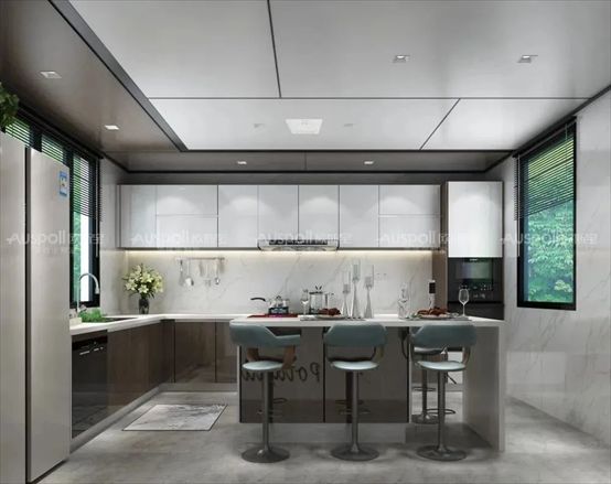 为此我们要赋予厨房更多的意义,开放式厨房与岛台的设计,餐厨一体化,不仅增加厨房空间,而且添加收纳空间,可以为家庭储备一周以上的粮食,协作之时,家庭成员们可以相互交流,促进感情。