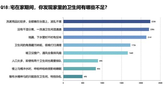 据数据统计,人们开始更加关注卫生间健康与智能,以及功能空间的增加与合理划分独立空间。