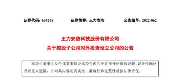 王力安防:控股子公司拟1000万元在湖北新设新型建材公司