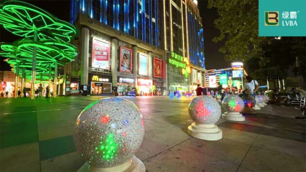 绿霸发光球应景而生,日间是阻车球,夜间通电后球体表面发光, 色彩变幻丰富,为应用场景提供亮化、警示、防护的作用。正好为华润万家外广场道路光线问题提供了最优选择,独有的发光效果给道路提供全新的感官体验,星光熠熠的发光阻车球也满足了群众的好奇心,让整个广场道路更具时代感,同时也保障了行人车辆的夜间出行安全,重新定义了一块圆滚滚石头的使命。每当在超市满载而归,充斥着人情味的超市里,让饱受疫情反复困扰的顾客,在万家超市热气腾腾的烟火气中得到慰藉与治愈。华润万家是新的生活方式,致力于改善消费者生活品质,以持续的优化和创新发展,营造多元化、全方位的丰富消费体验,提供高质、超值、安全的商品和服务,为消费者带来家的温馨、富足、健康,带来越来越好的生活方式,这也是绿霸选择和万家合作的重要谋合点,同样选择将客户服务放在重要位置上。
