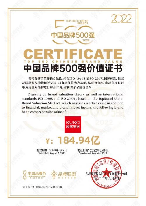 蝉联中国品牌500强,顾家家居品牌价值持续攀升