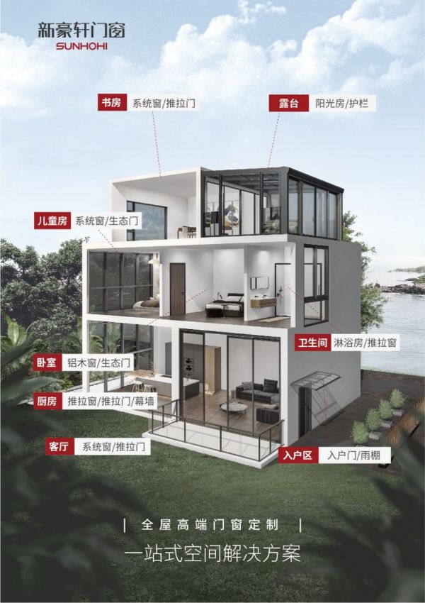 新豪轩率先落地全屋门窗一站式定制,旗下拥有系统门窗、铝木窗、阳光房、淋浴房、幕墙、生态门、入户门等门窗品类,覆盖全国34省1000+旗舰店,每年为100000+中国家庭提供高效节能、智能环保的全屋门窗解决方案。