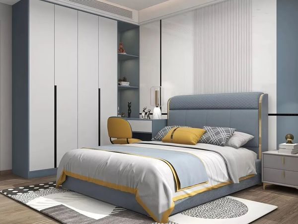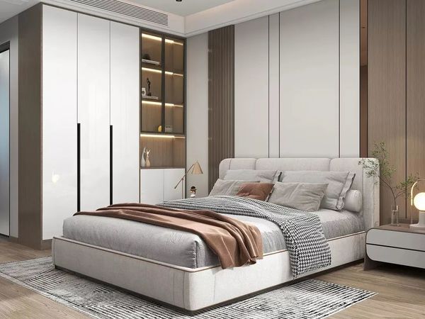 储物柜嵌入阳台,视觉上增加卧室空间的同时