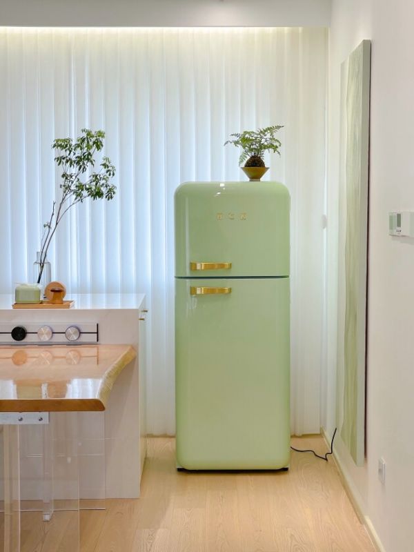 美剧《破产姐妹》里,两姐妹虽然过得穷困潦倒,但是不改对品位的追求,家里的Smeg复古冰箱是意大利顶ji厨电品牌,复古又时尚。