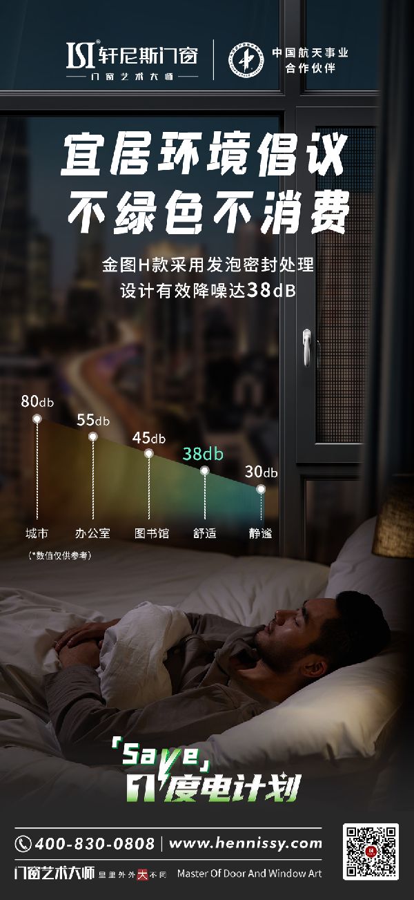 追求绿色,崇尚自然,是人们对生活的美好愿景,室内宜居的理想声音环境为30~45dB,轩尼斯门窗倡议营造宁静舒适的家居环境,持续通过品质与环保、低碳、绿色完美结合的方式,多方面满足不同层次的消费需求,为更多人带来舒适、时尚的人居空间与生活享受,让家居生活远离喧闹。