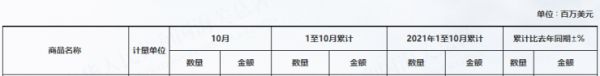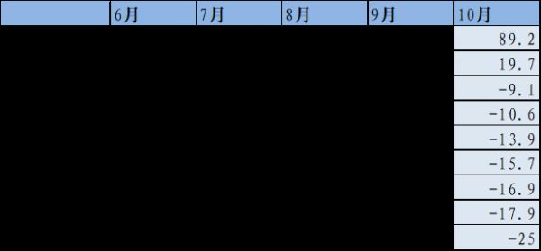 10月,地产后周期商品出口情况如下:家具、灯具和家用电器分别同比下降10.6%、15.7%和25.0%。