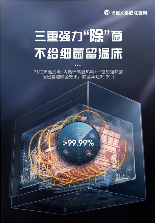 疫情当下,火星人D70集成洗碗机积极捍卫每个家庭的健康,为冬季“养生”排除万难。D70搭载300kPa高压泵,三个喷淋臂立体清洁,75℃高温四翼旋风智洗,多维智能横扫顽固污渍,油污不残留;专利内循环热风烘干,告别湿气净爽干存,三重强力除菌,除菌率达到99.99%,从源头阻隔细菌,让每个锅碗瓢盘都洁净无菌,使用更放心。