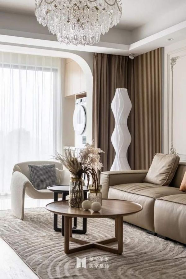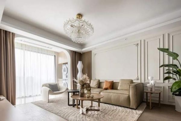 沙发与石膏板互相衬托,在室内营造出了软糯的视觉效果。法式风格代表性拱门不但能起到延展空间的视觉效果,也让空间更具设计感。