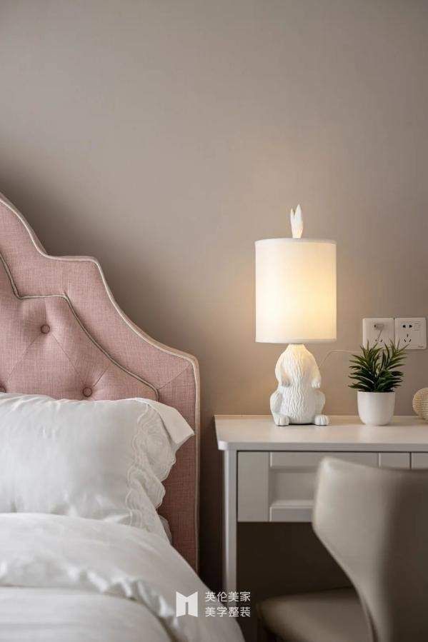 床头的小兔灯配合暖色的灯光,使空间氛围感立体起来。在细节里养成孩子对美的感知力以及生活态度。