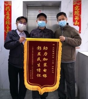 日前,上海长宁新泾镇新泾一村87号楼业主金老师热诚的将一份锦旗送给了永大电梯战略总部吴承轩副总经理与既有住宅加装营销处吴斌总监手中,感谢永大电梯为近40年房龄的新泾一村进行电梯加装,“给我们生活带来了这么大的方便!”