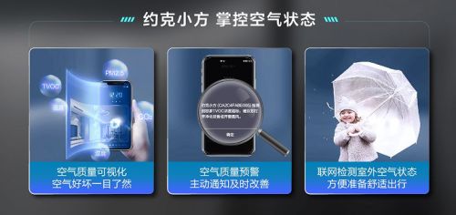 约克VRF中央空调5G智能物联,守护每个家观赛日程!约克小方实时监测湿度、温度、TVOC、PM2.5、二氧化碳五大空气指标,当任意一项超标,立即传递给i-YES Ⅱ移动控制终端,由它传递自动启动命令至全屋空调、新风设备等,完成各自重任,让空气时刻保持健康舒适,让鲜活空气陪伴每一次进球时分。