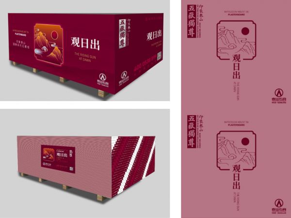 几千年来,不同的民族和不同的地理环境沉淀出不同的文化。泰山作为历史名山、文化名山,在这片热土上也创生了一个优秀的品牌,泰山石膏继承并发扬泰山文化和华夏文明,以此为灵感,设计研发“印象泰山”系列产品:《观日出》、《盘云海》、《黄金带》,采用独特的板面印花技术,将泰山的三大自然奇观跃然其上,赋予石膏板鲜活的文化内涵。