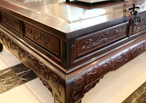 国宾沙发配套茶几美观大方,恰到好处地提升家居时尚感。复古抽屉,超大容量,储物收纳秩序井然,让家更干净整洁。雕花精致华美,温润如玉,现代工艺美学被诠释得淋漓尽致。