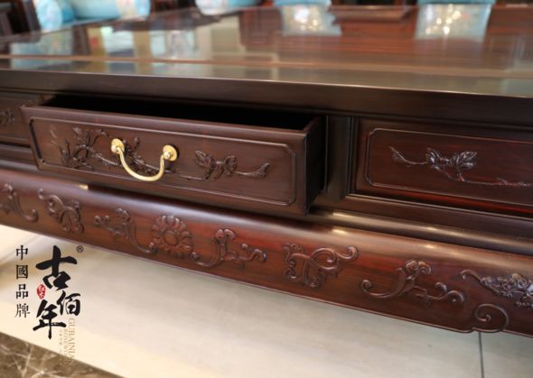 作为一款质感优雅的红木沙发,古佰年国宾沙发在选材、型制、工艺细节等方面下足功夫。