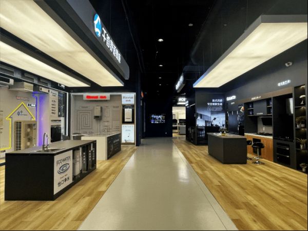 陈康乐:我们将商品展示区分为了三个大的板块,一个是建材区,一个是软装区,一个是电器区。建材区内又划分了专门的瓷砖区、地板区、橱柜区、卫浴区。软装则有餐厅区、客厅区的划分,从软装分类来说还有实木馆、软体家居馆、床垫窗帘体验馆等。电器我们则以品牌来做区域划分,比如海尔、卡萨帝、博士、方太、林内等。这样客户到了之后,不会说来了一眼看过去不知道去哪里,这些我们在最初设计的时候都进行了有意的规避。