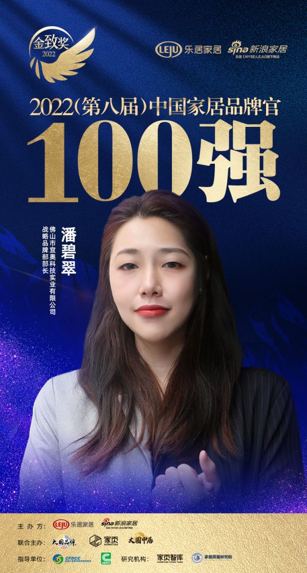 宜奥科技潘碧翠荣获「2022家居百强品牌官」称号