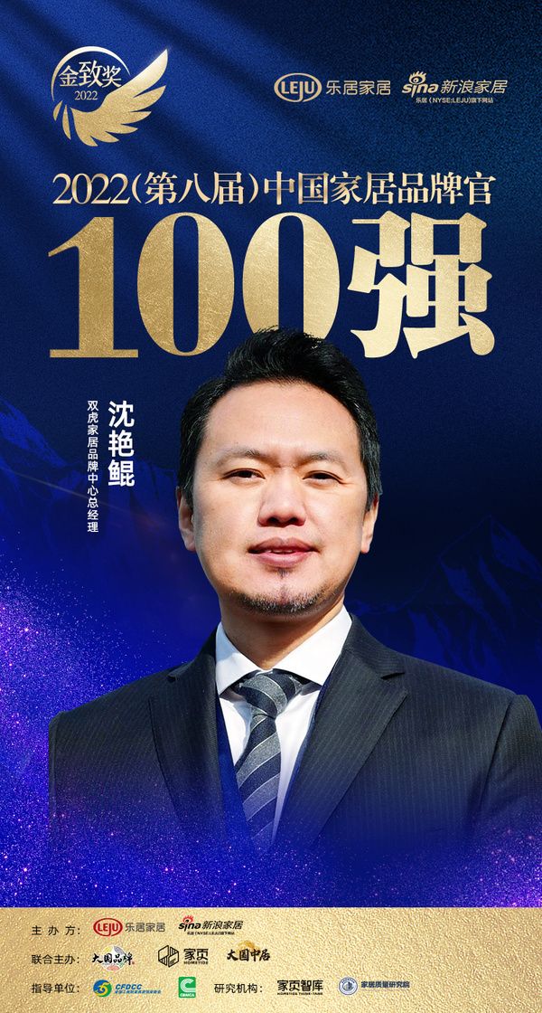 双虎家居沈艳鲲荣获「2022家居百强品牌官」称号