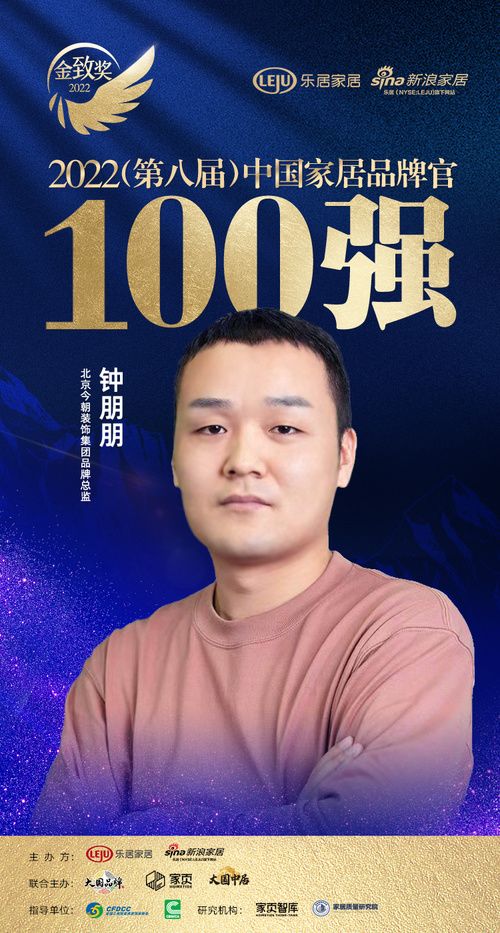 新浪家居讯 2022年12月26日,『趁势·再起——2022中国家居新时代盛典暨金致奖颁奖典礼』在云端盛大开幕。今朝装饰钟朋朋荣获「2022(第八届)中国家居百强品牌官」称号。