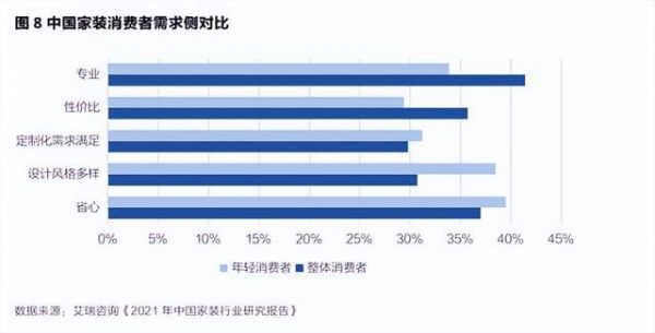 根据艾瑞咨询《2021 年中国家装行业研究报告》,省心靠谱是家装消费者最重要的服务诉求。尤其是年轻消费者,对省心和定制化需求更高。