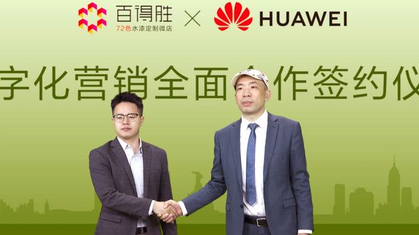 发布会现场,百得胜X华为数字化营销全面合作签约仪式,在大家的共同见证下,实现百得胜与华为的强强联合,开启百得胜72色水漆定制微店新时代。
