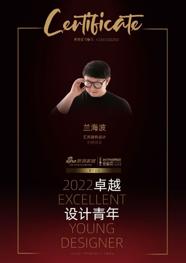 2022卓越设计青年”由新浪家居和金堂奖全国联盟发起,是设计业界最具传播价值的年度先锋荣誉,新浪家居与金堂奖联名认证。旨在发掘和表彰室内设计领域表现卓越的杰出青年设计师。设计师兰海波荣膺“2022卓越设计青年”称号。