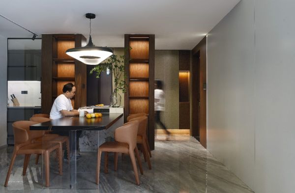 【兰海波】:我简单聊聊我们最近刚完成的一套私宅项目,随着时代和房价的变化现代的私宅面积也越来越集成化,之前客、餐、厨独立形态逐渐已经消失,现在主流形式变为了客、餐、厨一体化,由于空间面有限,通过一体化的手法更好的让小空间呈现出大空间的效果,同时对我们的厨房设备要求也更加苛刻,低分呗的噪音、良好的控油烟、使用的安全性就尤为重要。