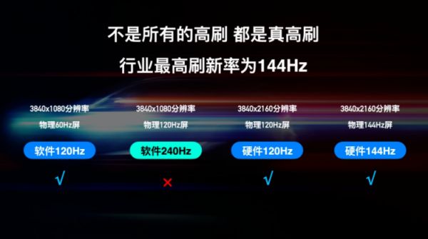 这里需要解释一下的是,如今的电视产品基本上都是智能电视了,仅仅有一块高刷的屏幕硬件是无法获得真正的高刷体验的,还需要HDMI 2.1接口,并在电视的处理芯片、软件算法再加上屏幕硬件的共同作用下,才能在不牺牲画质的前提下为我们真正呈现出高刷观影体验;而假高刷虽然可以达到240Hz,但却是以牺牲一半分辨率为代价的,这种饮鸩止渴的操作属实要不得。