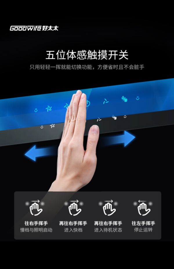 开始炒菜时忘记开油烟机,等到油烟升起才想起打开油烟机?为了避免这种尴尬,烟机CXW-200-8211还设计了五位体感触摸开关,只用轻轻一挥就能切换功能,方便省时且不会脏手。也不用担心,因为手上沾染了油渍再去触碰油烟机开关搞得脏兮兮。
