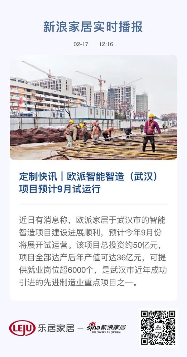 定制快讯|欧派智能智造(武汉)项目预计9月试运行