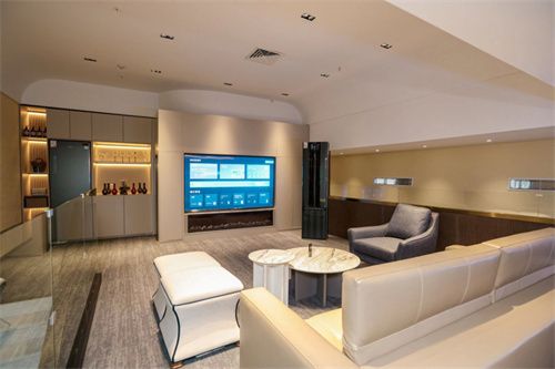 转身来到二楼高端会员品鉴区,设置了休憩区,用户逛完楼下的生活场景可以到楼上休息。在欣赏电视带来影院级视听体验的同时,空调提供舒适软风。此外,卡萨帝冰吧中备有饮品与新鲜水果,供用户随时享用;高级礼服可以放进智慧护理柜,随时除皱、杀菌、塑形,让奢品衣物焕然如新。