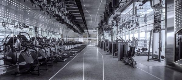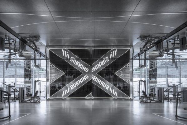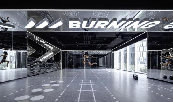 【陈辰】:伯尼健身房· BURNING。空间设计灵感来源于科幻电影《遗落战境》的太空舱画面。畅想在充满未来感的世界中,人们应该怎么去运动、去生活?被雕刻、被镜面修剪后的空间就像每个热爱健身的人对自身形体的刻画、塑形。设计师将前台造型模拟为主体的脑机接口,背景使用大面积电子元件造型和模仿心电图的流线灯,整体色调均采用低饱和度的黑白灰。设计师将“镜面、不锈钢、白色玻璃”进行了大面积的穿插使用,用常见但又不常感受的方式去定义“健身”,摆脱以往健身房灰暗,沉闷,工业风的刻板印象。一边是充满荷尔蒙气息、力量感爆发的器械区,一边是有氧训练区,曲线环绕地面,相互交融,同时呼应着前台心电图形式的流线灯,元素变换出现使空间更具备趣味性。
