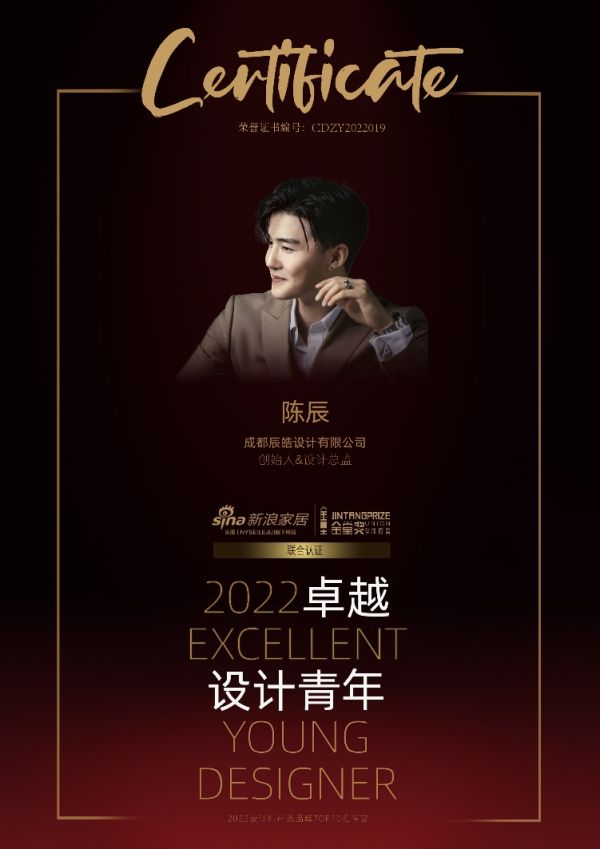 2022卓越设计青年”由新浪家居和金堂奖全国联盟发起,是设计业界最具传播价值的年度先锋荣誉,新浪家居与金堂奖联名认证。旨在发掘和表彰室内设计领域表现卓越的杰出青年设计师。设计师陈辰荣膺“2022卓越设计青年”称号。