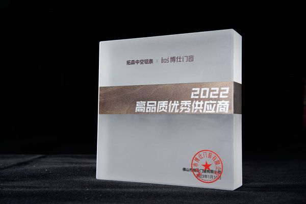 拓森中空铝条获“博仕门窗2022高品质优秀供应商”