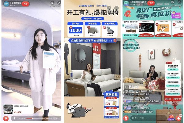 除了大牌家装建材,智能床、智能按摩椅、布艺沙发等家具品类也推出“云探厂”直播,诚意“放价”。例如,舒福德奥运智能电动床日常价29559元,直播价18599元,足足省下万元。芝华仕主播力荐的爆款按摩椅直降200元,还有满额赠品相送。林氏家居布艺沙发日常价3899元,下单立省1000元还送99元小圆凳。