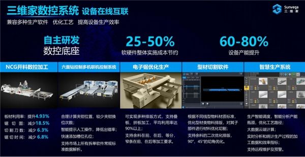 2022年年初,三维家与南兴装备合作,在数控钻孔和自动化连线方案方面作出了升级创新,通过打通软件与生产设备,打造高端数控装备,让设备的自动化程度和系统的定制化程度更高,从而为家装产业链增产扩能。