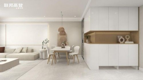 餐边柜收纳藏露轻简搭配,加之运用柔和细腻的色彩,展现空间纯粹的优雅灵气。