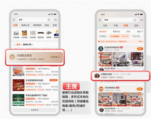 为提高转化效率,淘宝天猫将倾斜更多优势资源给甄选商家。《天下网商》了解到,甄选商家将获得官方留资和特定的资源入口。举例来说,在淘宝App搜索“装修”等关键词后,首页就会出现甄选商家的特定入口。另外,淘宝店铺寻找链路也升级了,新增“同城家装+本地门店”的入口,经营质量分更高的甄选商家能获得更高的店铺排序。