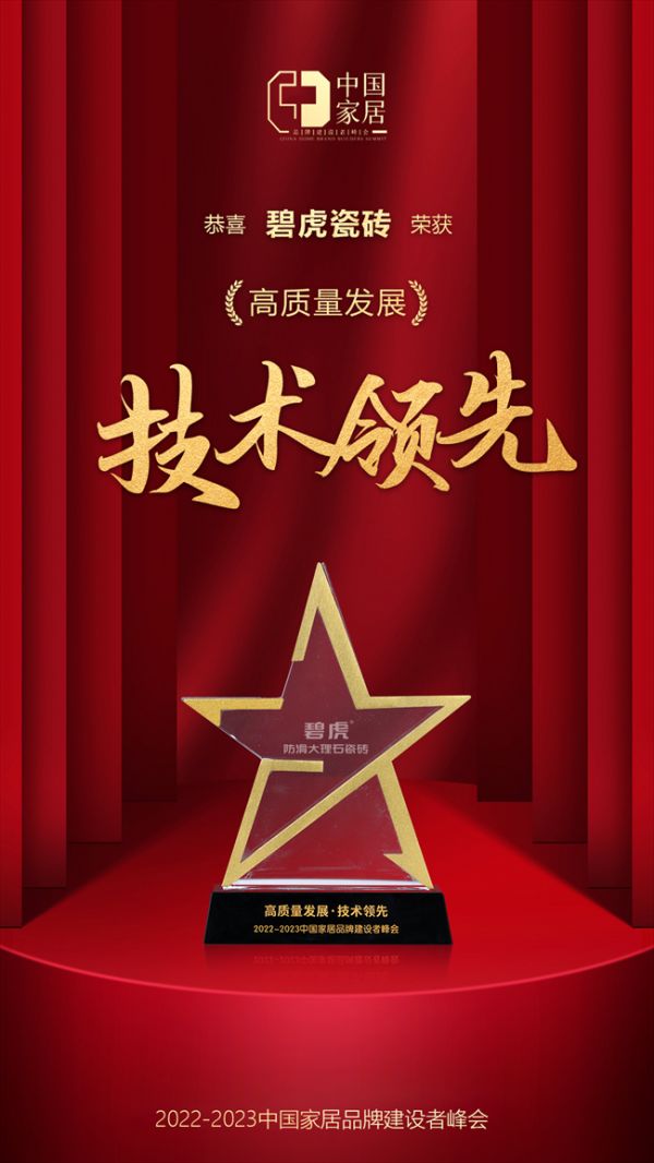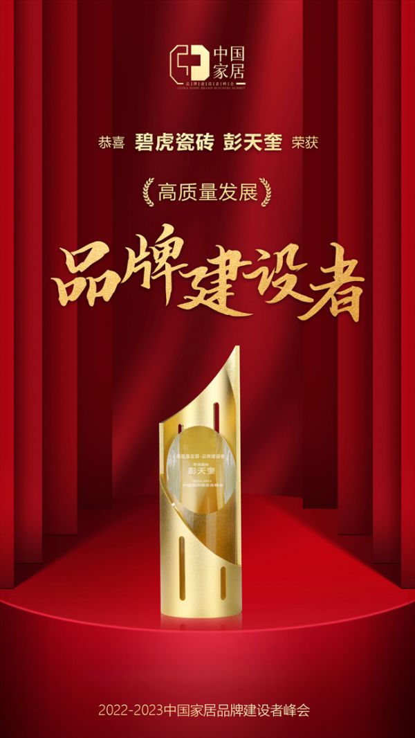 碧虎聚焦防滑瓷砖赛道,将产品做到极致,充分发挥自己的防滑技术优势,迅速行动抢占市场先机成为“防滑单品冠军品牌”,2022年全国经销商突破300家,以强劲的姿态走在行业前列,成为推动行业发展的主力军。彭天奎获得“2022年中国家居品牌建设者”奖项实至名归。