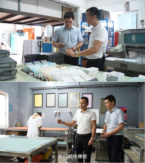 “这边是我们的打板房,我们的师傅工龄平均在5年以上,所以产品工艺完全不用担心。这边打完板以后,来到这边晾晒,完全干燥之后,再拿到那边去裁切,然后再装订,一套完整的流程”。