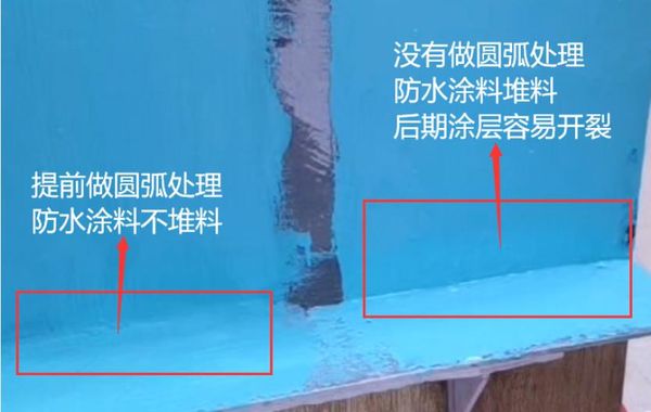 对墙角、管道周边做弧形收边,对裂缝进行修补,就是很重要的节点处理方法。