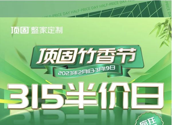 顶固继月初的“聚力前行 势在必然“峰会落幕后,马不停蹄地开始了315活动的紧密筹备中,并于今天正式开始了其“竹香节”315半价日大促活动的推广,以半价的大幅优惠力度,吸引广大消费者的眼球,以此开启响亮的一战。