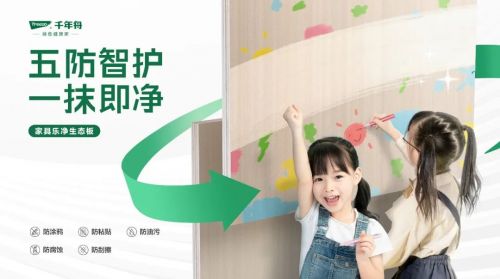 乾坤造化钟神秀,自然孕育千年舟。从2018年,千年舟首届品牌战略发布「绿色健康家」理念到2021年,千年舟「为人民造一张好板」的理念升级;再到2022年,千年舟产品与品牌双升级,「抗菌锌标准·引领新潮向」 ,参与制定国家人造板环保等级标准 ,实现ENF级产品全渠道覆盖……